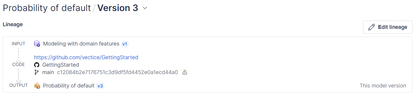 Ensure your code is never lost by capturing it in Vectice to complete lineage.