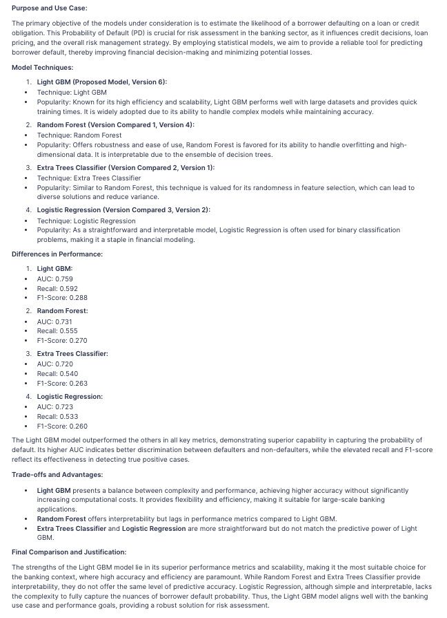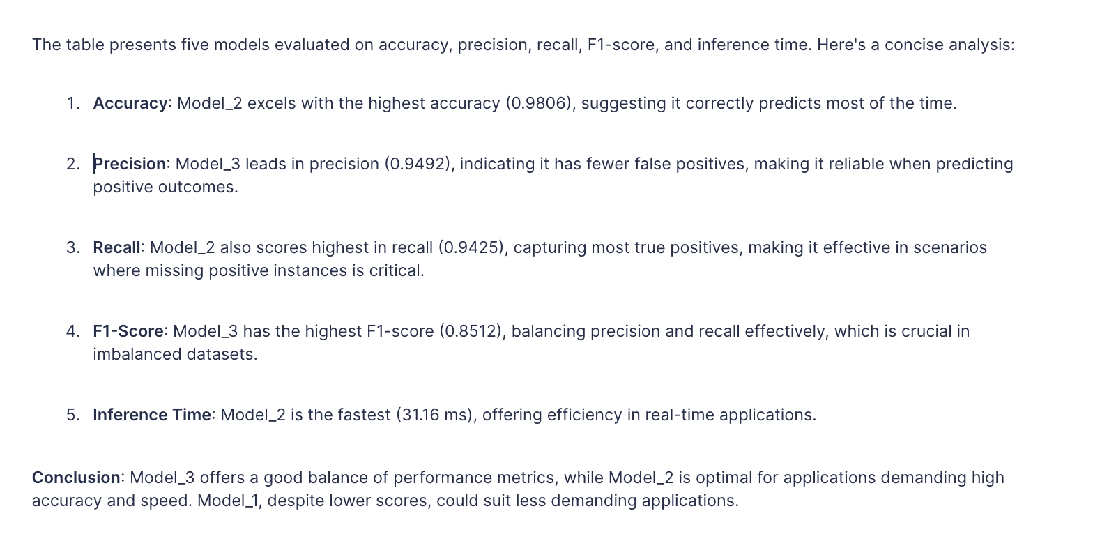 The following AI prompt will generate a detailed comparison of multiple models, highlighting differences in technique, training data, and results.