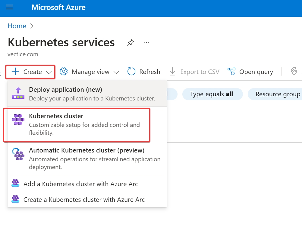 Then fill in the fields and make sure to set it in the same resource group as the AKS Cluster and the Azure PostgreSQL instance in the same Region.