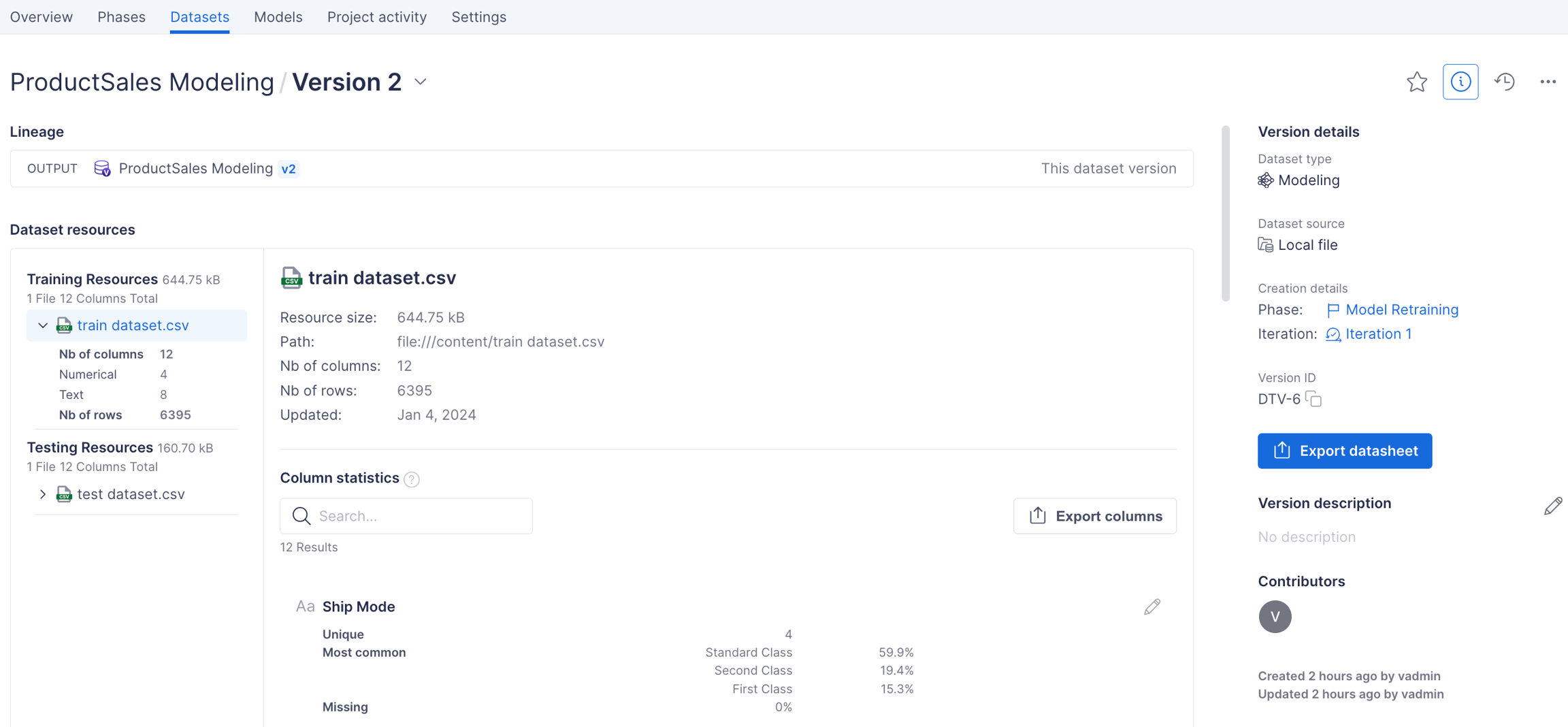Data scientists can document dataset structure and statistics in Vectice by using Pandas or Spark dataframes (version 3.0 and newer) when logging datasets.