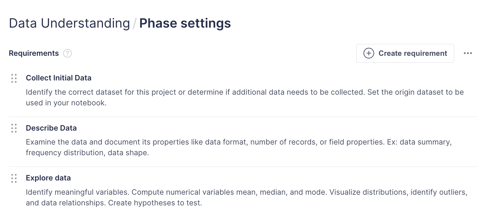 For instance, the data preparation phase in the default template already has the necessary requirements.