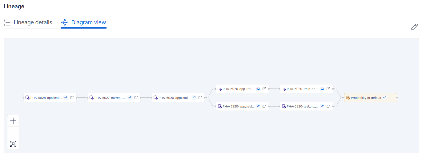 Users can now visualize model and dataset lineage with interactive diagrams directly within the Vectice app. The diagrams are fully editable, allowing users to add or remove datasets and models to complete and customize the end-to-end lineage of a project.