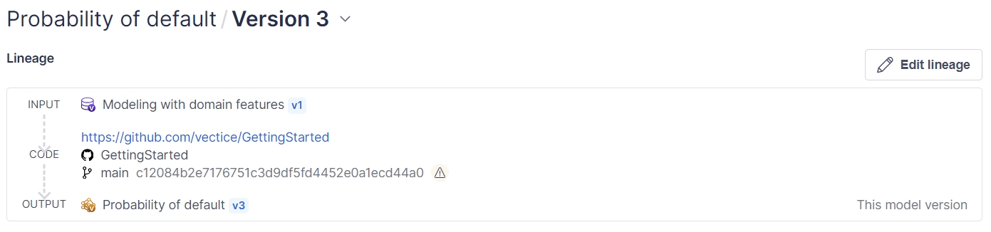 • Ensure your code is never lost by capturing it in Vectice to complete lineage.