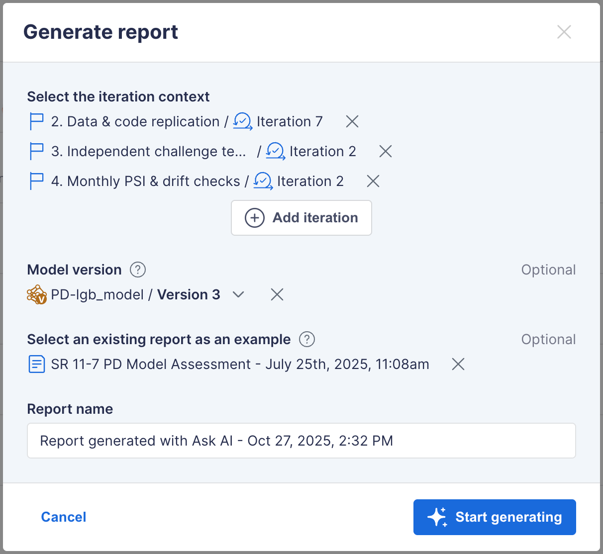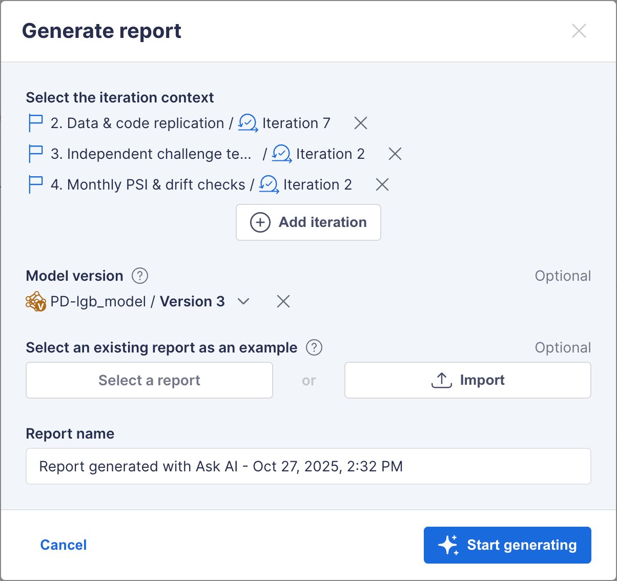 Path 1 β Ask Vectice to build a technical report with Ask AI