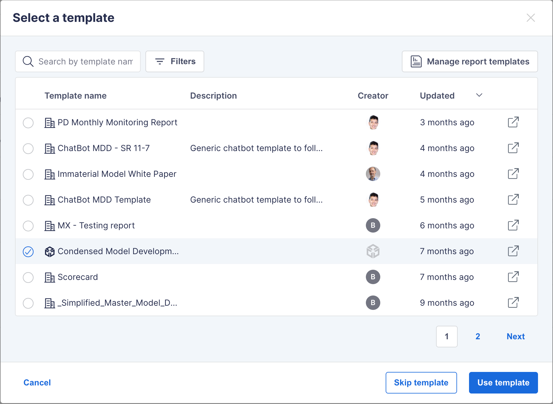 Best for: updating legacy docs or reusing past reports as templates for new reports. Vectice will respect the documentation structure and content and apply it to the newly generated documents