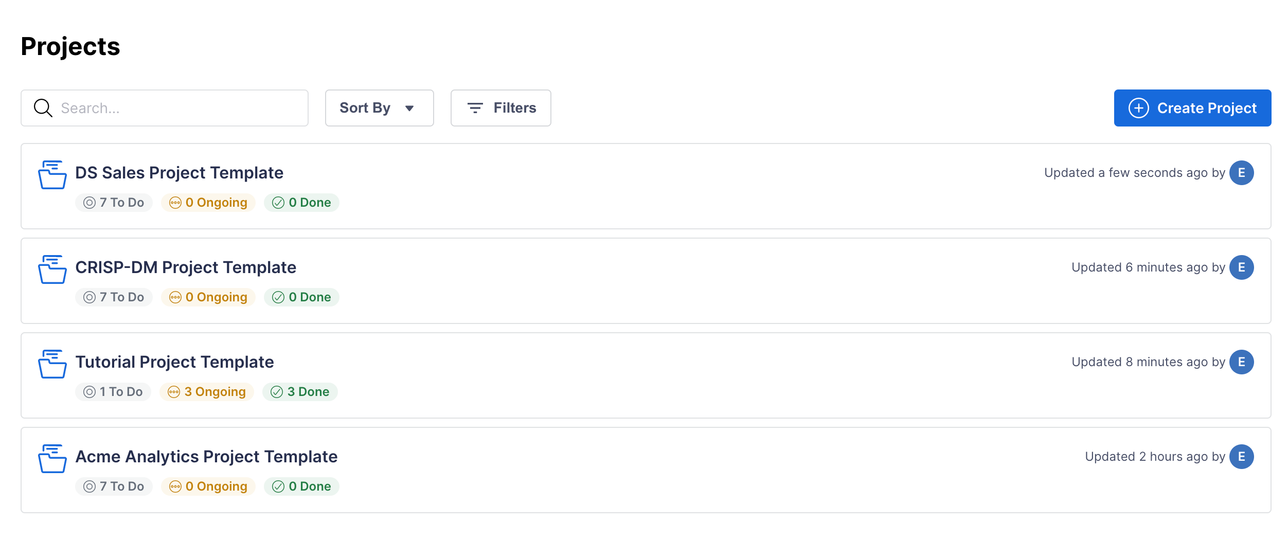 Templates are an excellent starting point for projects. The default template is based on the CRISP-DM methodology, widely used in data science and certified by the Data Science Process Alliance. However, if your organization has its own process, you can follow best practices to get the most out of these project templates.